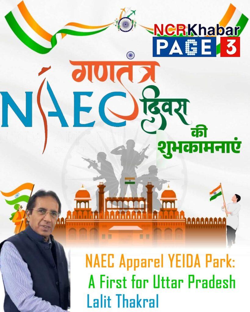 NAEC अपेरल यीडा पार्क के चेयरमैन ललित ठकराल ने गणतंत्र दिवस परअपनी शुभकामनाये दी है उन्होंने एनसीआर खबर से चर्चा में कहा कि संविधान की शक्ति हर अनागरिक को आज मिली थी “संविधान हमें अधिकार देता है, लेकिन कर्तव्य हमें महान बनाते हैं। आइए अपने कर्तव्यों का पालन कर देश को गौरवान्वित करें। हैप्पी रिपब्लिक डे!”