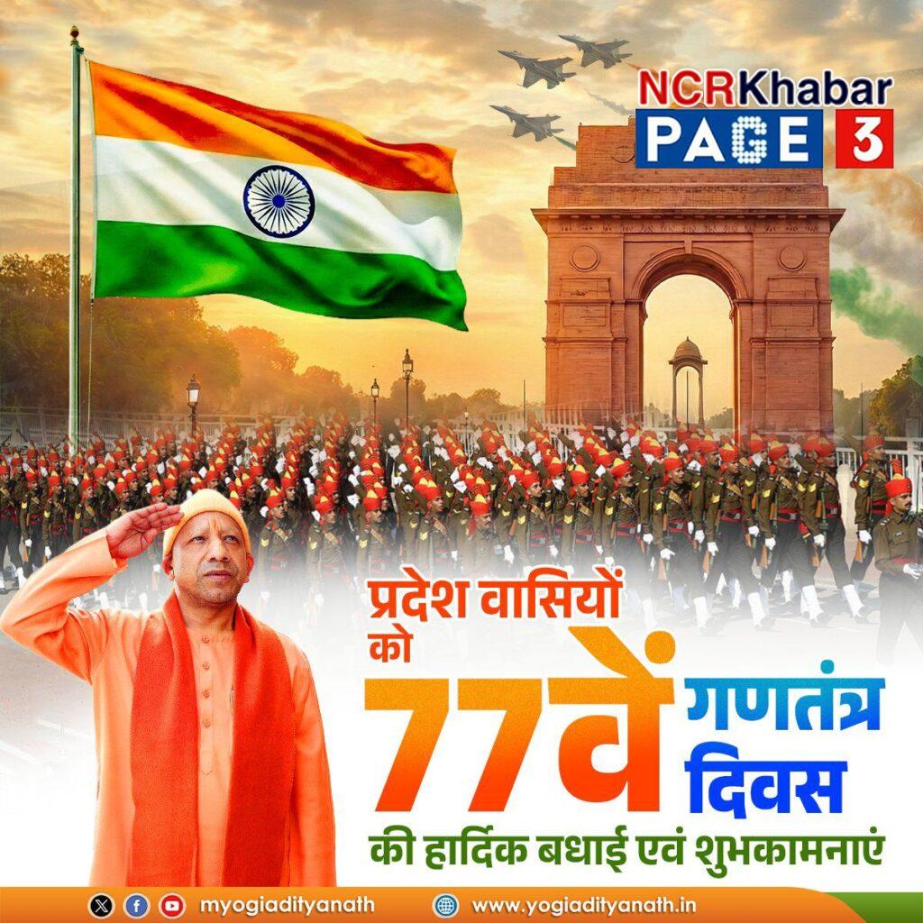 उत्तर प्रदेश के मुख्यमंत्री योगी आदित्यनाथ ने प्रदेश वासियों को 77वें गणतंत्र दिवस की हार्दिक बधाई एवं शुभकामनाएं दी है । उन्होंने कहा कि हम सभी का राष्ट्रप्रेम, कर्तव्यनिष्ठा और विकास के प्रति समर्पण हमारे लोकतंत्र को सशक्त एवं मजबूत बनाता है। आइए, अपने अमर सेनानियों को स्मरण करने के साथ, संविधान के आदर्शों से प्रेरित होकर एक ‘सशक्त, समृद्ध और आत्मनिर्भर भारत’ के निर्माण हेतु संकल्पित हों। जय हिंद!